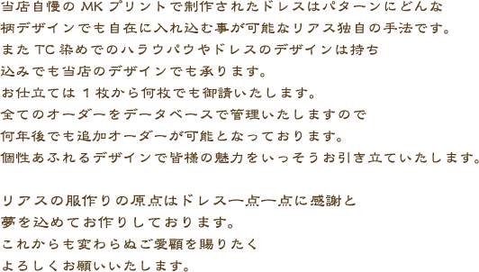 80年代は着物地をリメイクしたドレスなどが話題となりリアスの名前が知られる事となる。